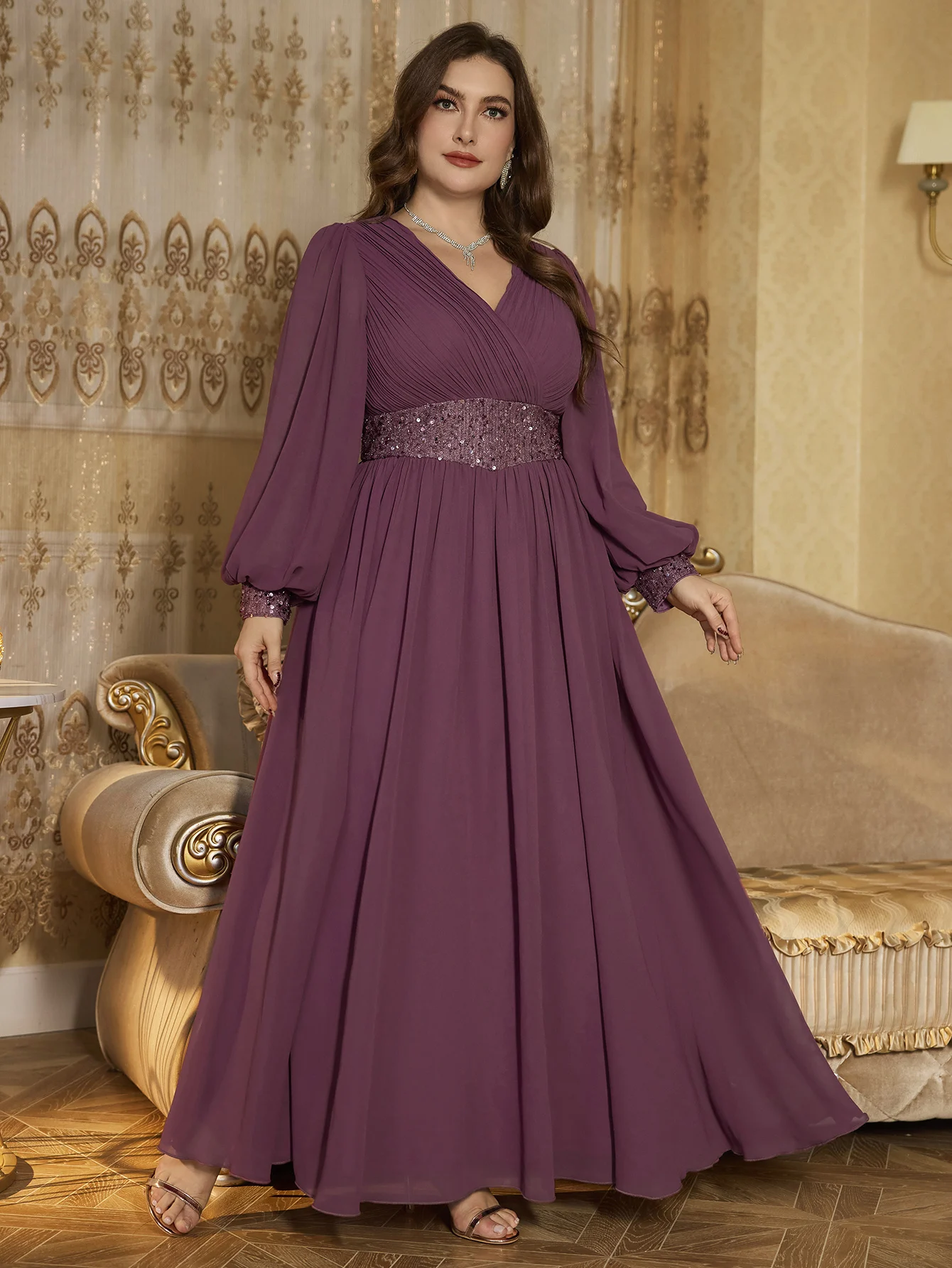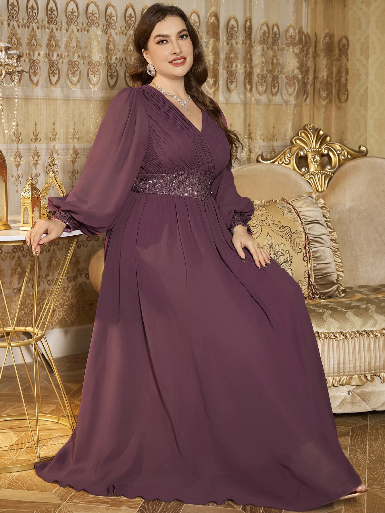 - 👗 تطريز الترتر عند الخصر (Sequin Panel): حزام مدمج مرصع بالترتر اللامع (Glitter) يحدد الخصر ببراعة، مما يمنحكِ مظهراً أنحف وأكثر تناسقاً.